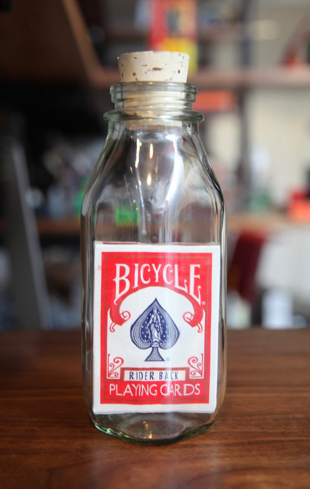 Not being a classically trained artist, however, I focused on what I know and love- the art of magic. But the Anything Is Possible bottle isn't a magic trick. I came up with the solution, that I still have kept completely secret to this day, after years of hard work. The deck of cards has gone in through the hole at the top of the milk bottle, the bottle hasn't been altered in any way; but it wasn't placed there by magic. It was set inside with patience, tenacity, and with a deep love for art. I like to think of it as the one secret left in magic that isn't for sale. I hope that it represents the wonder that we've all felt at some time in our lives.